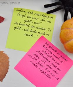 Die Druckvorlagen erleichtern uns die tägliche Suche nach passenden Brotdosenwitzen für unsere Kinder. Einfach Post-its bedrucken und mit passenden Nachrichten für den Tag beschriften.